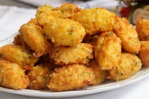Com as mãos levemente untadas, molde pequenas bolinhas ou croquetes. - Fritar